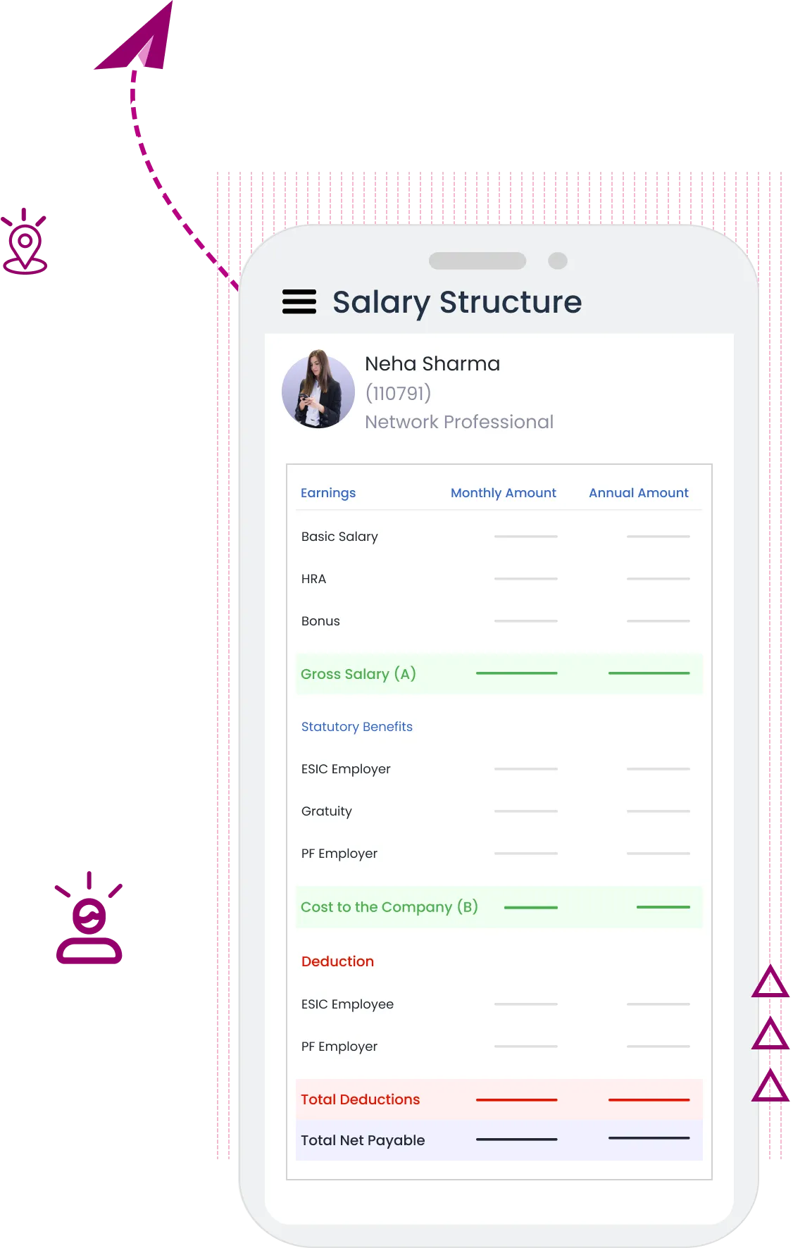 Simplify payroll processing with configurable salary structures and automated calculations. All statutory compliances, including PT, ESI, LWF, and PF, are taken care of.