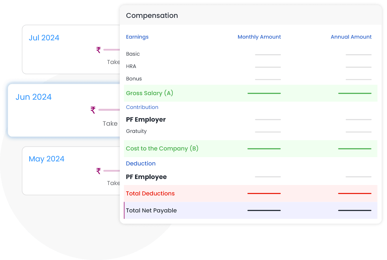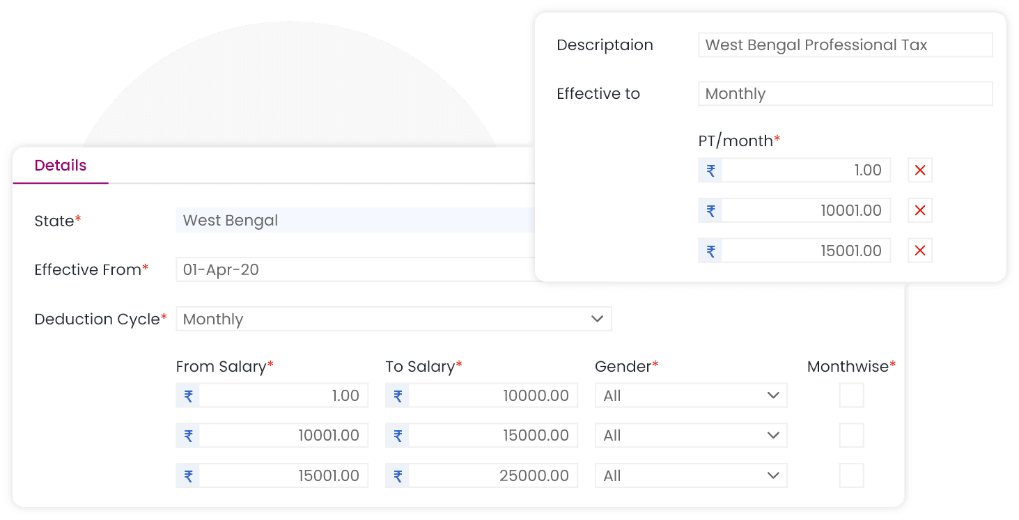 This feature automatically calculates and deducts the employee's contribution to the Provident Fund from their salary. It ensures accurate and timely PF deductions are made, reducing the risk of non-compliance.