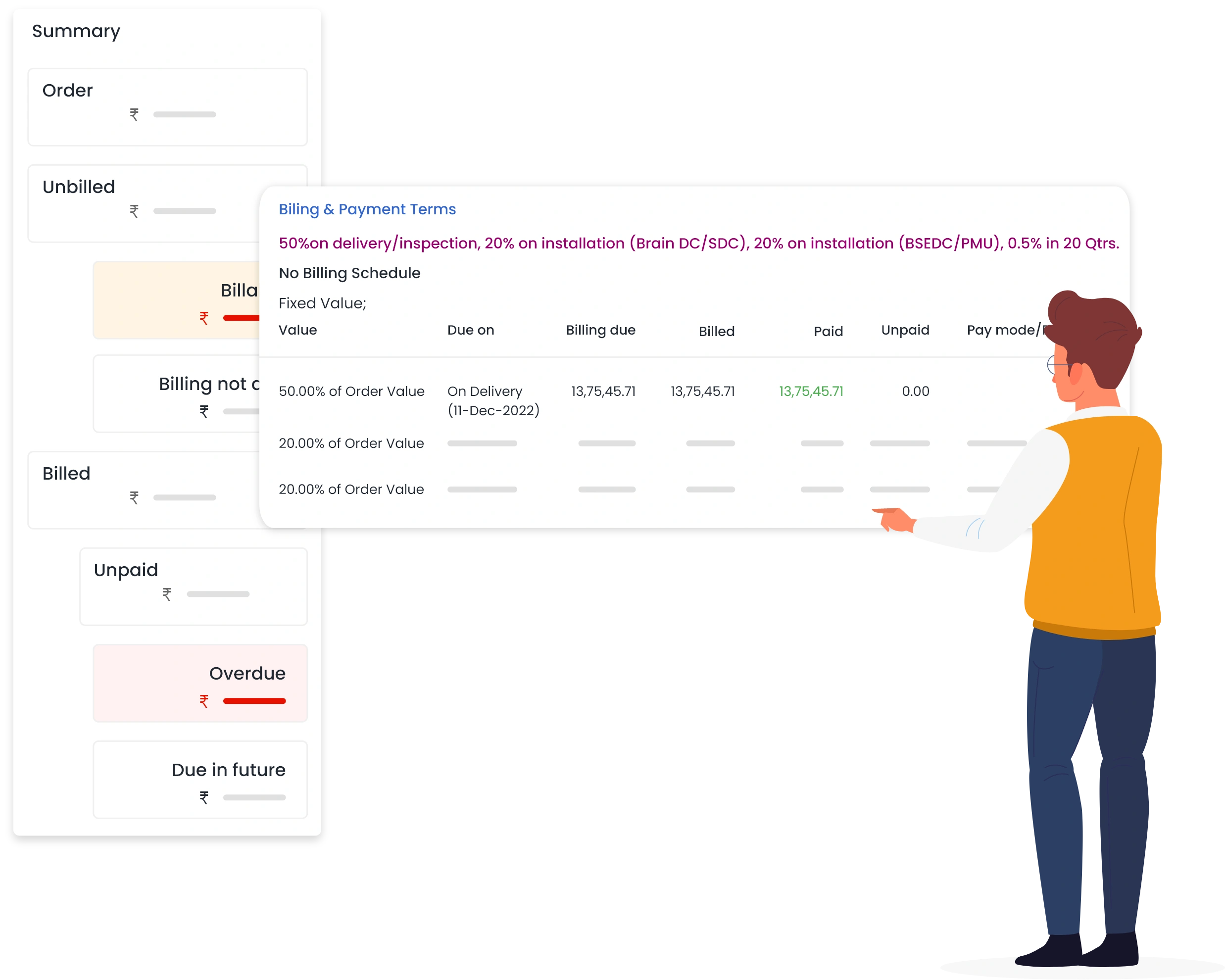 Qkrsales provides a comprehensive view of all billing and payment information, enabling businesses to keep track of their billing and payment schedules, and ensuring no delays in billing.