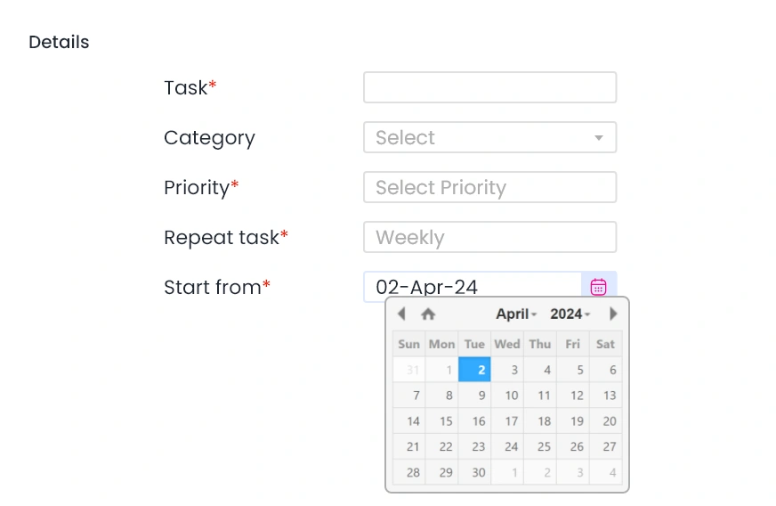 Schedule tasks due in future or recurring tasks such as weekly reports, monthly MIS or annual renewal of contracts.