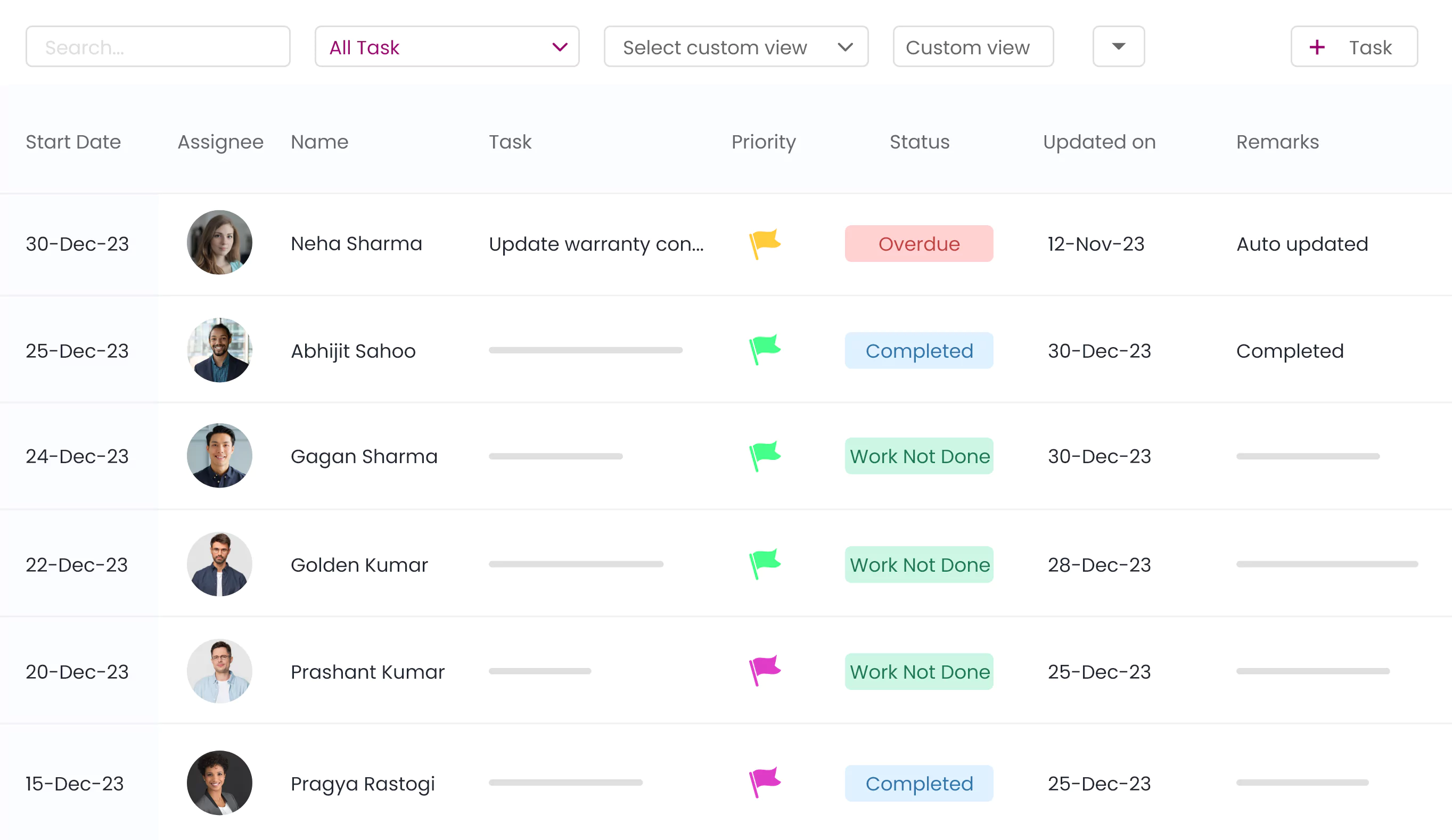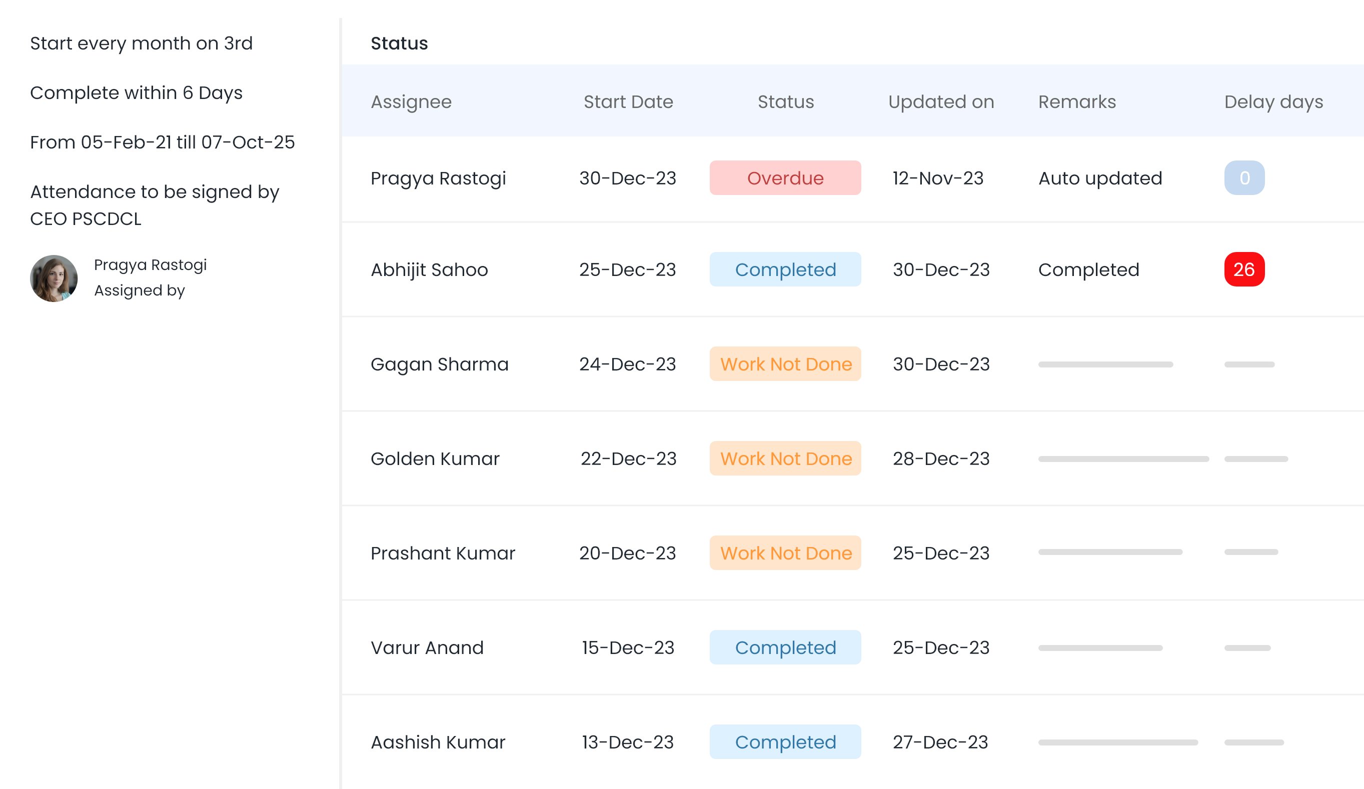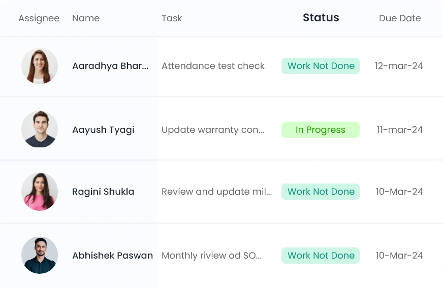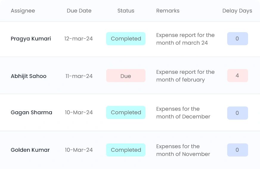 Stay on top of your work with visibility of all tasks assigned to any of your reportee team members as well as tasks assigned by them.